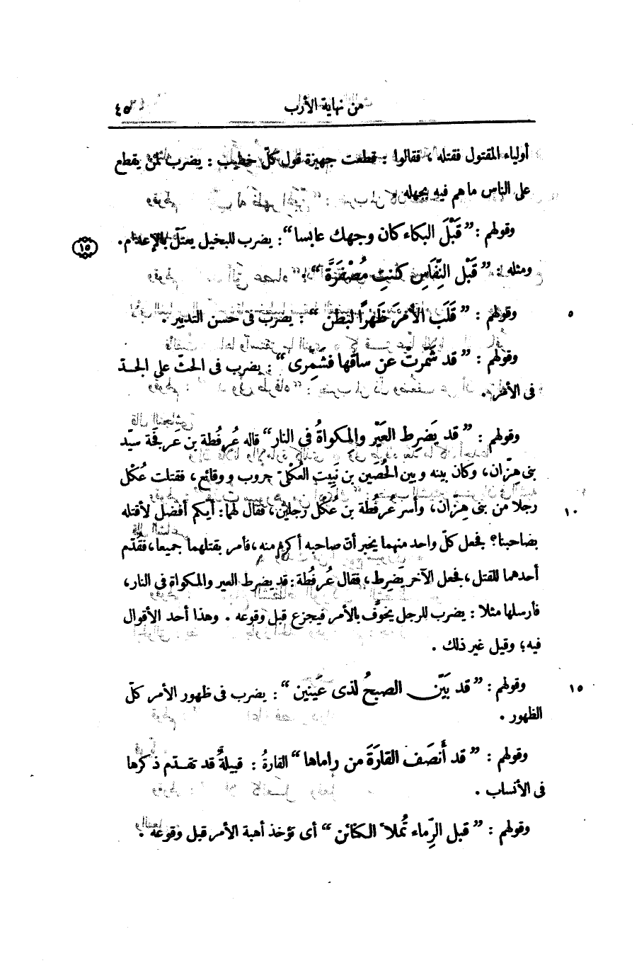 وقولهم: «قد يضرط العير والمكواة في النار» قاله عرفطة بن عرفجة سيّد بنى هزّان، وكان بينه وبين الحصين بن نبيت العكلىّ حروب ووقائع، فقتلت عكل رجلا من بنى هزّان، وأسر عرفطة بن عكل رجلين، فقال لهما: أيّكم أفضل لأقتله بصاحبنا؟ فجعل كلّ واحد منهما يخبر أنّ صاحبه أكرم منه، فأمر بقتلهما جميعا، فقدّم أحدهما للقتل، فجعل الآخر يضرط، فقال عرفطة: قد يضرط العير والمكواة في النار، فأرسلها مثلا: يضرب للرجل يخوّف بالأمر فيجزع قبل وقوعه. وهذا أحد الأقوال فيه؛ وقيل غير ذلك.