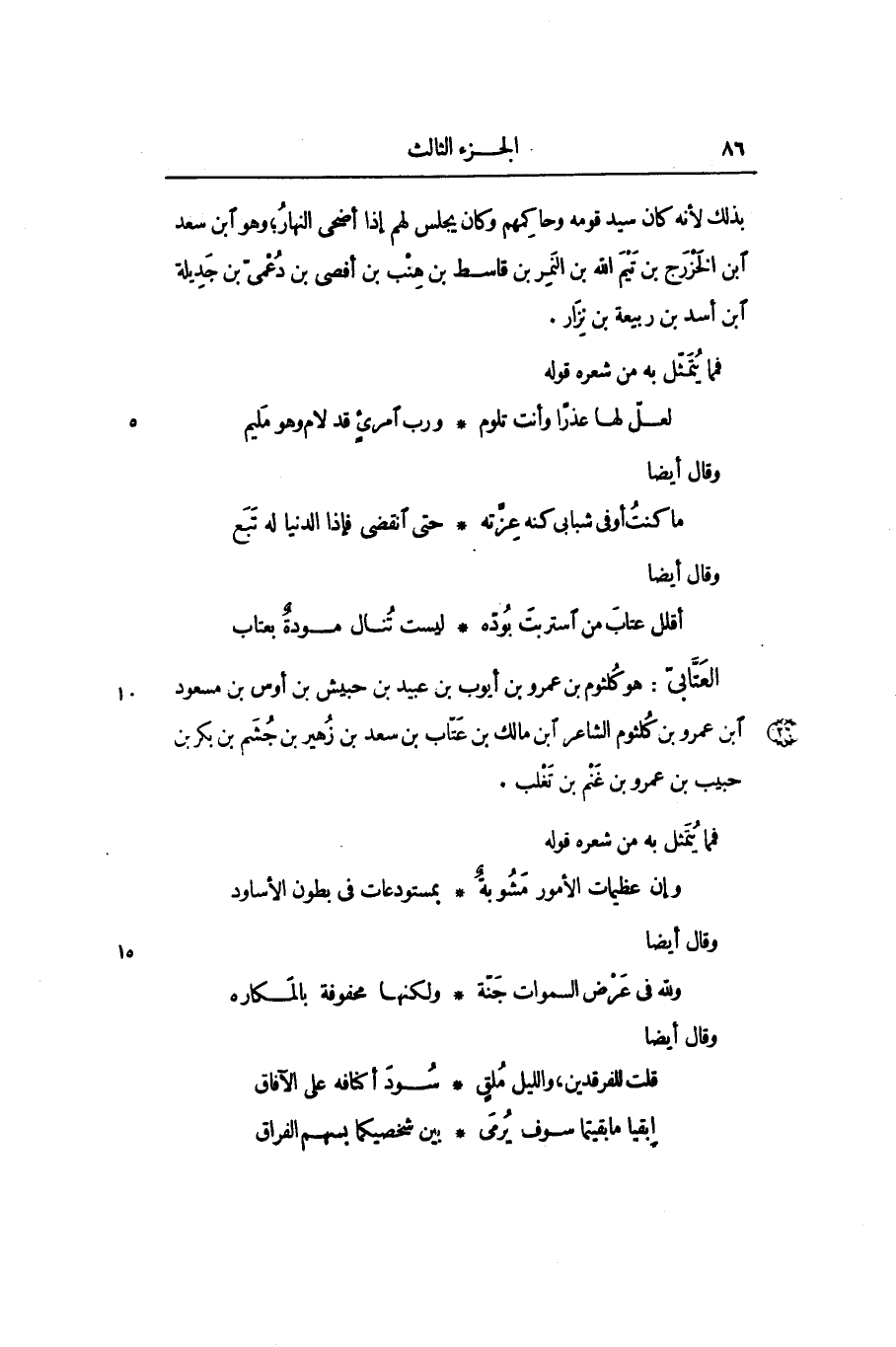 هو كلثوم بن عمرو بن أيوب بن عبيد بن حبيش بن أوس بن مسعود ابن عمرو بن كلثوم الشاعر ابن مالك بن عتّاب بن سعد بن زهير بن جشم بن بكر بن حبيب بن عمرو بن غنم بن تغلب.