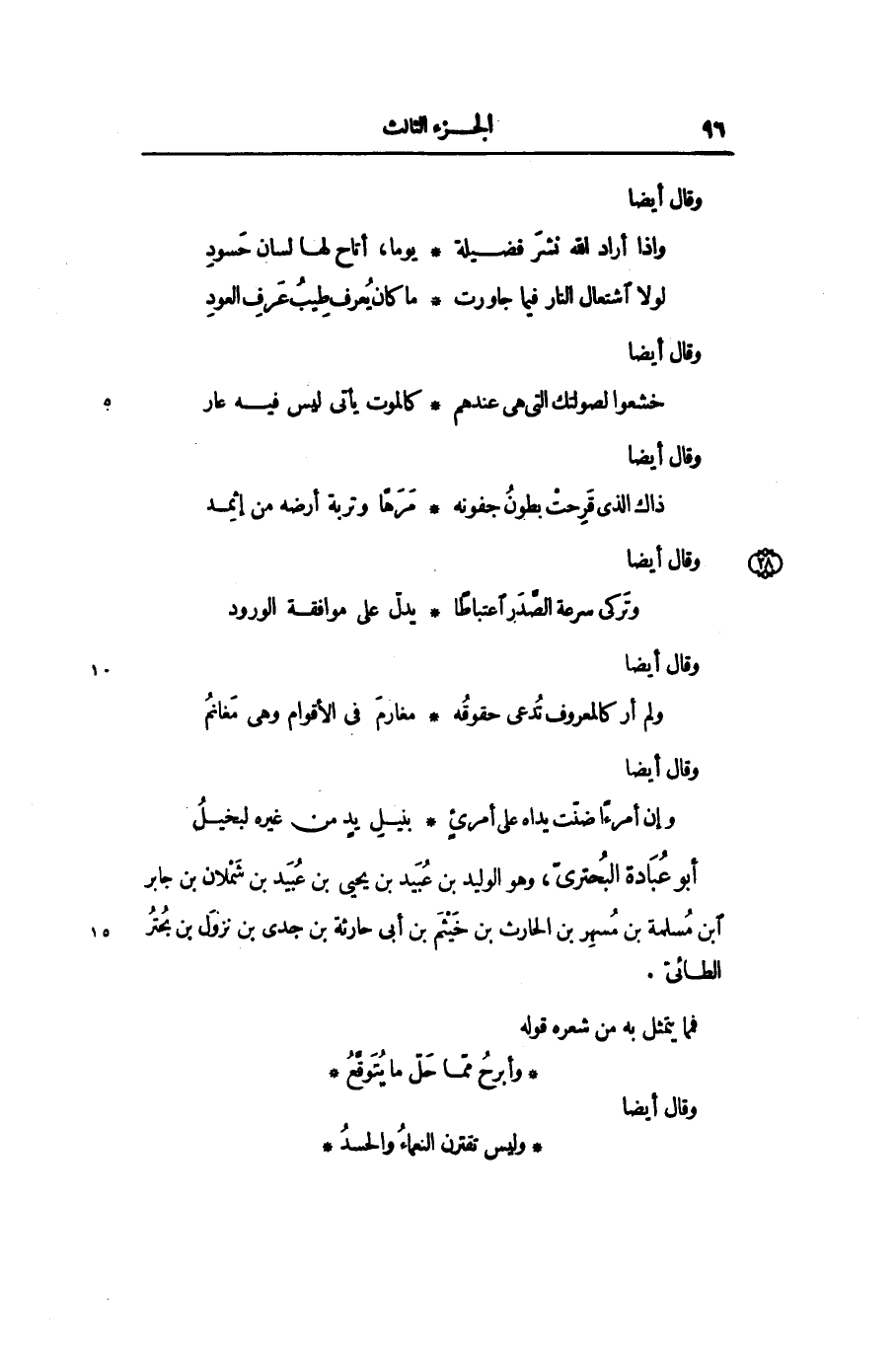 وهو الوليد بن عبيد بن يحيى بن عبيد بن شملان بن جابر ابن مسلمة بن مسهر بن الحارث بن خيثم بن أبى حارثة بن جدى بن نزول بن بحتر الطائىّ.