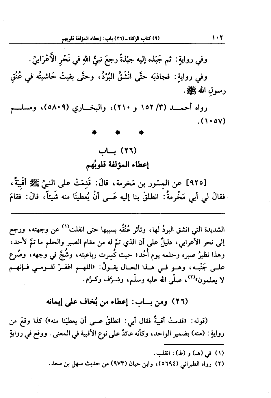 (26) ومن باب: إعطاء من يخاف على إيمانه