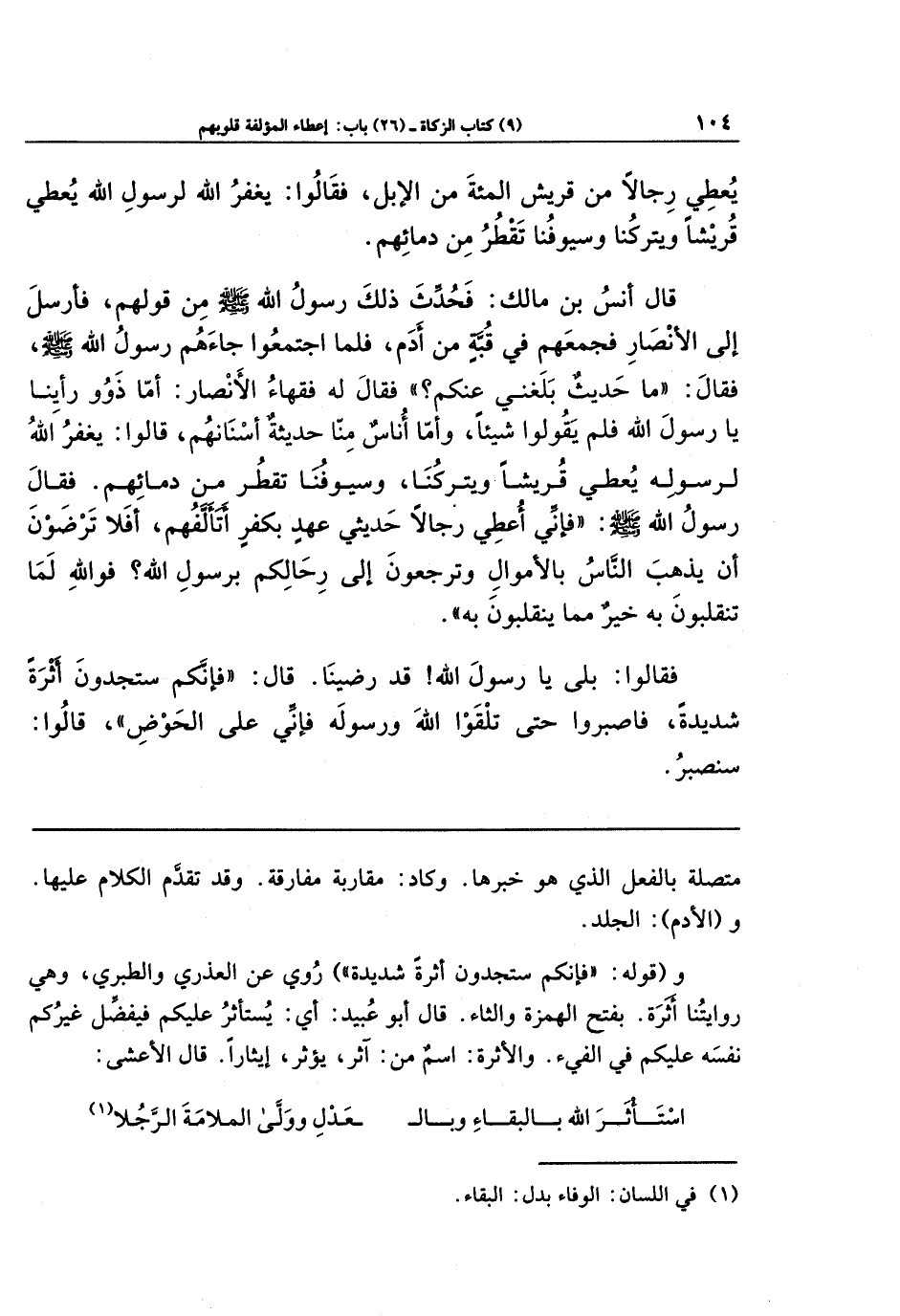 فَقَالُوا: بَلَى يَا رَسُولَ اللهِ! قَد رَضِينَا، قَالَ: (فَإِنَّكُم سَتَجِدُونَ أَثَرَةً شَدِيدَةً، فَاصبِرُوا حَتَّى تَلقَوُا اللهَ وَرَسُولَهُ، فَإِنِّي عَلَى الحَوضِ) قَالُوا: سَنَصبِرُ.