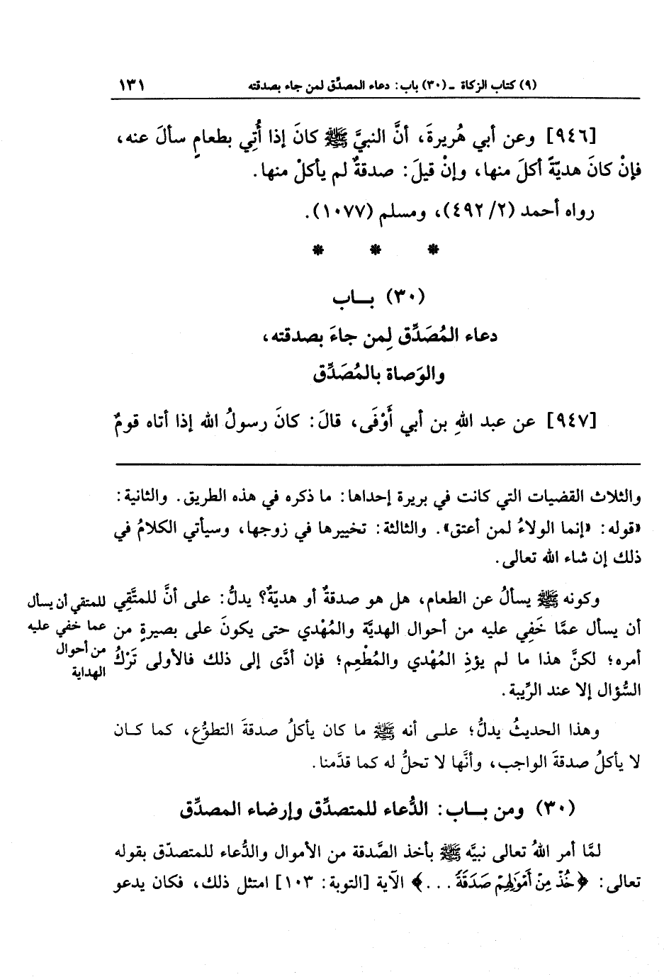 (30) باب دعاء المصدق لِمن جاء بصدقته، والوصاة بالمصدق