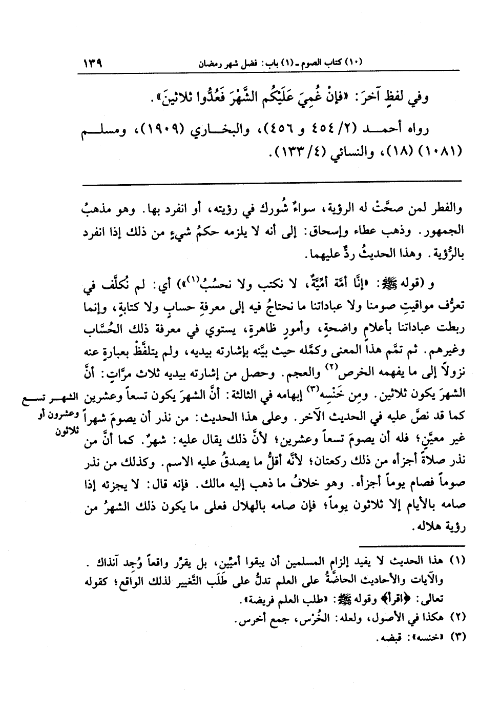(¬1) هذا الحديث لا يفيد إلزام المسلمين أن يبقوا أميِّين، بل يقرِّر واقعًا وُجد آنذاك.