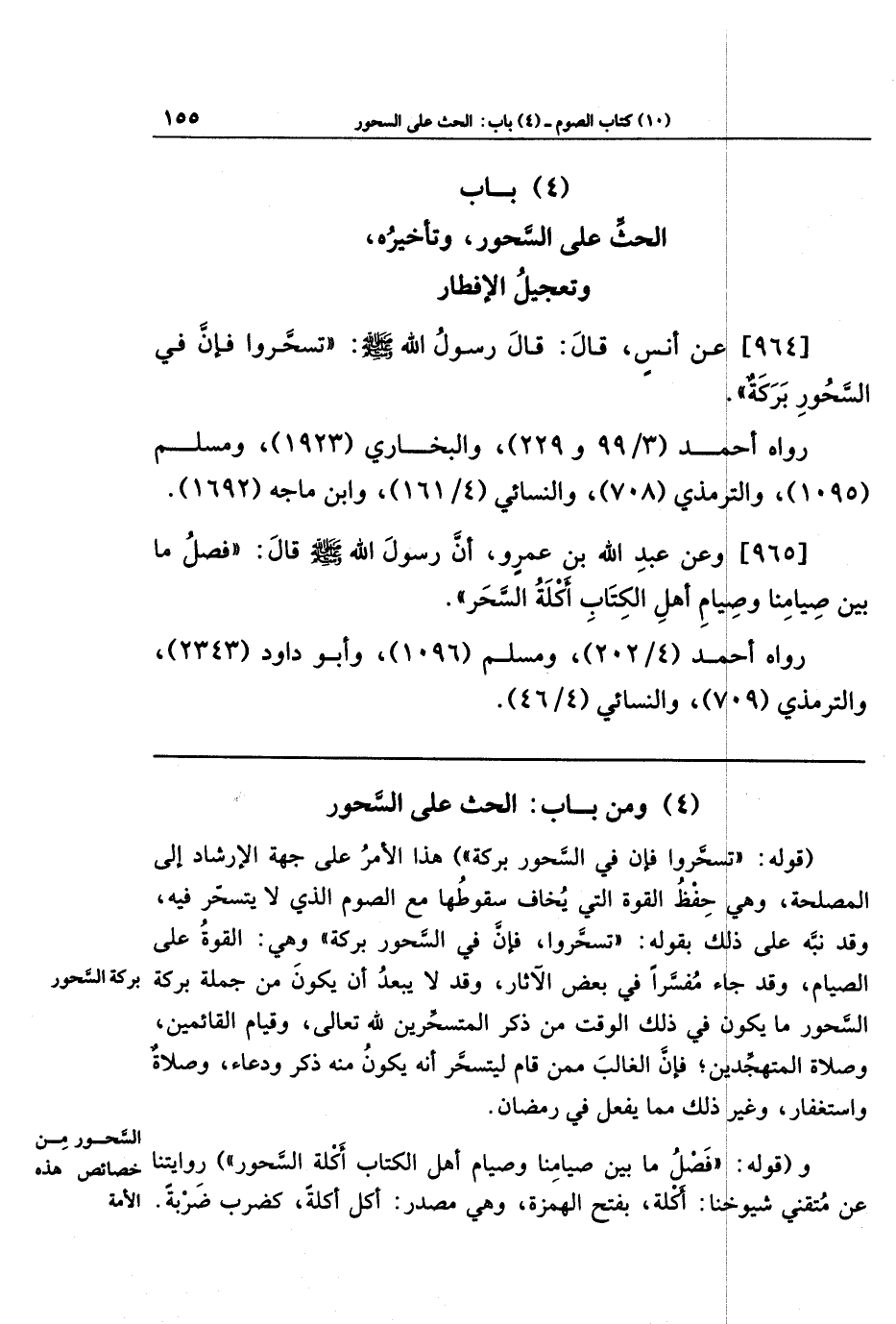 (4) باب الحث على السحور، وتأخيره وتعجيل الإفطار