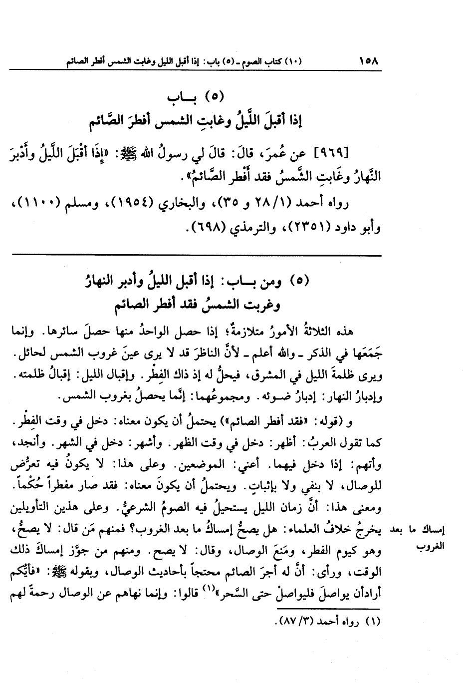 (5) باب إذا أقبل الليل وغابت الشمس أفطر الصائم