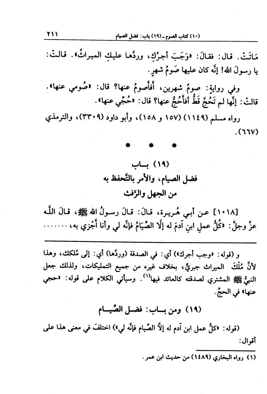 (19) باب فضل الصيام، والأمر بالتحفظ به من الجهل والرفث