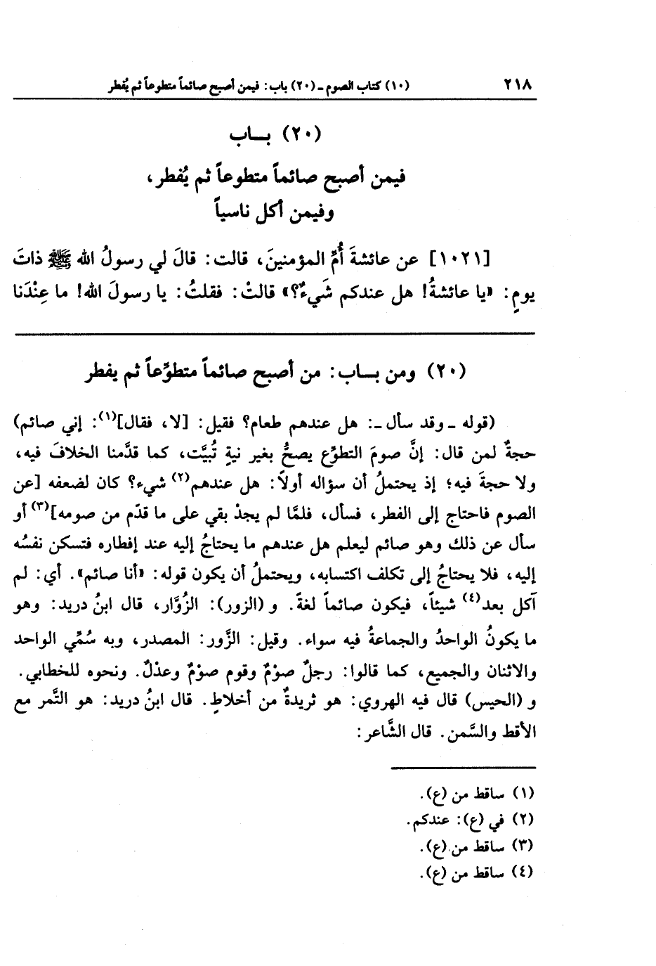 (20) باب فيمن أصبح صائمًا متطوعا ثم يفطر وفيمن أكل ناسيا