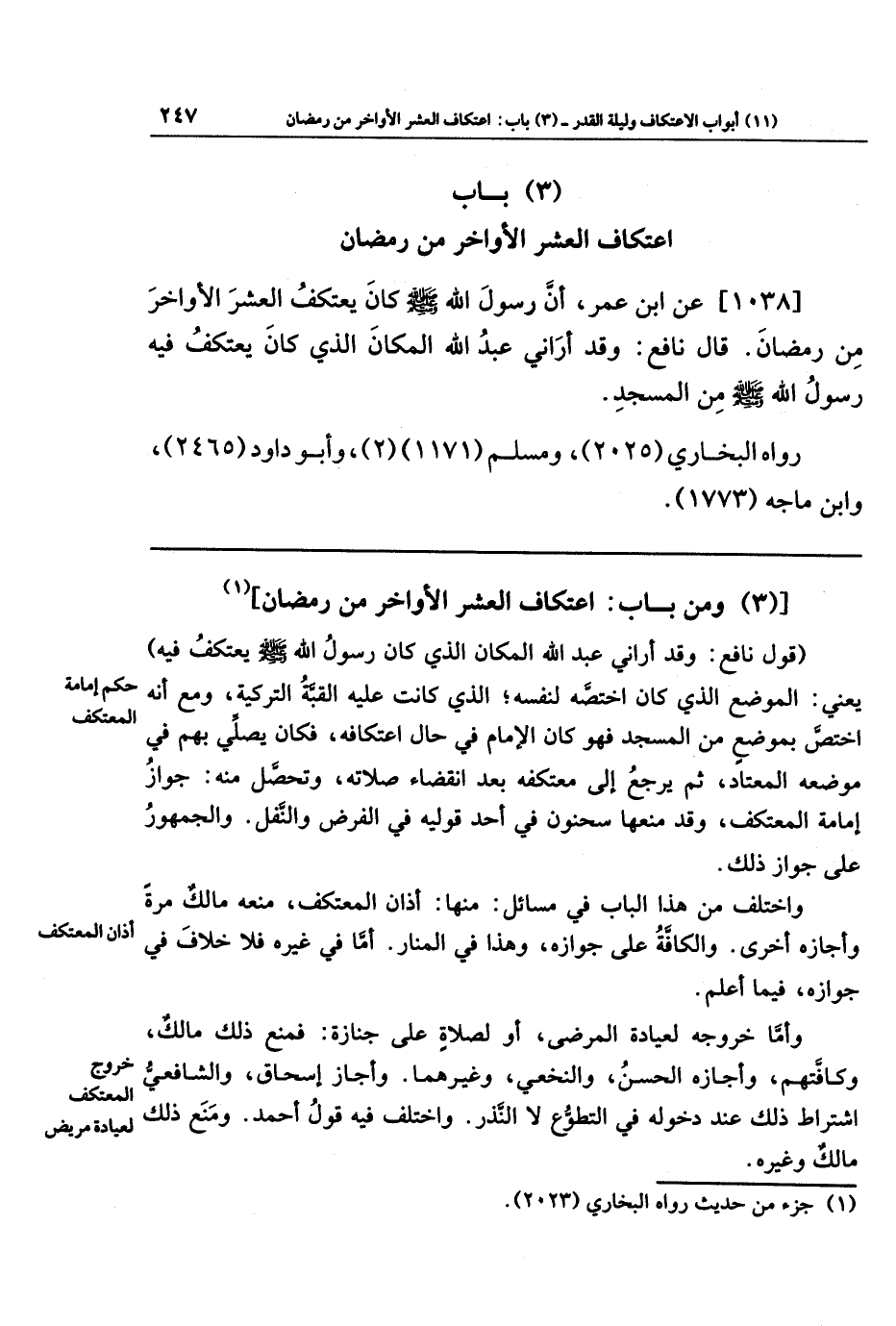 (3) باب اعتكاف العشر الأواخر من رمضان