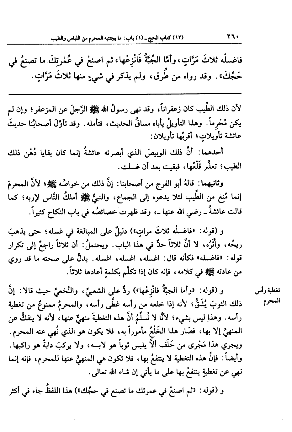 فَاغسِلهُ ثَلَاثَ مَرَّاتٍ وَأَمَّا الجُبَّةُ فَانزِعهَا، ثُمَّ اصنَع فِي عُمرَتِكَ مَا تَصنَعُ فِي حَجِّكَ. وقد رواه من طرق، ولم يذكر في شيء منها ثلاث مرات.