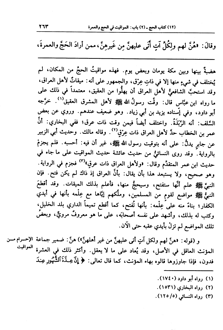 وَقَالَ: هُنَّ لَهُم وَلِكُلِّ آتٍ أَتَى عَلَيهِنَّ مِن غَيرِهِنَّ مِمَّن أَرَادَ الحَجَّ وَالعُمرَةَ