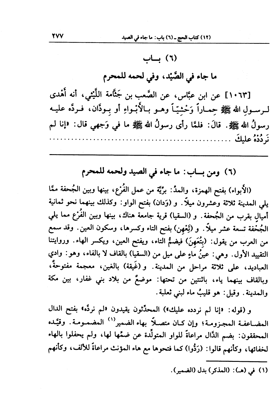 (6) باب ما جاء في الصيد، وفي لحمه للمحرم