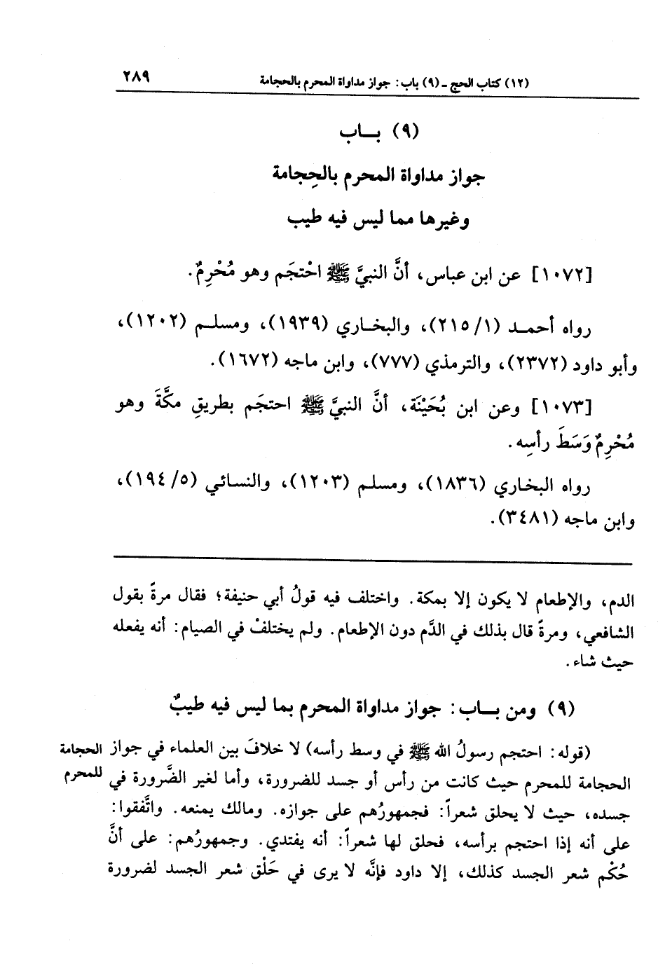 (9) باب جواز مداواة المحرم بالحجامة وغيرها مما ليس فيه طيب