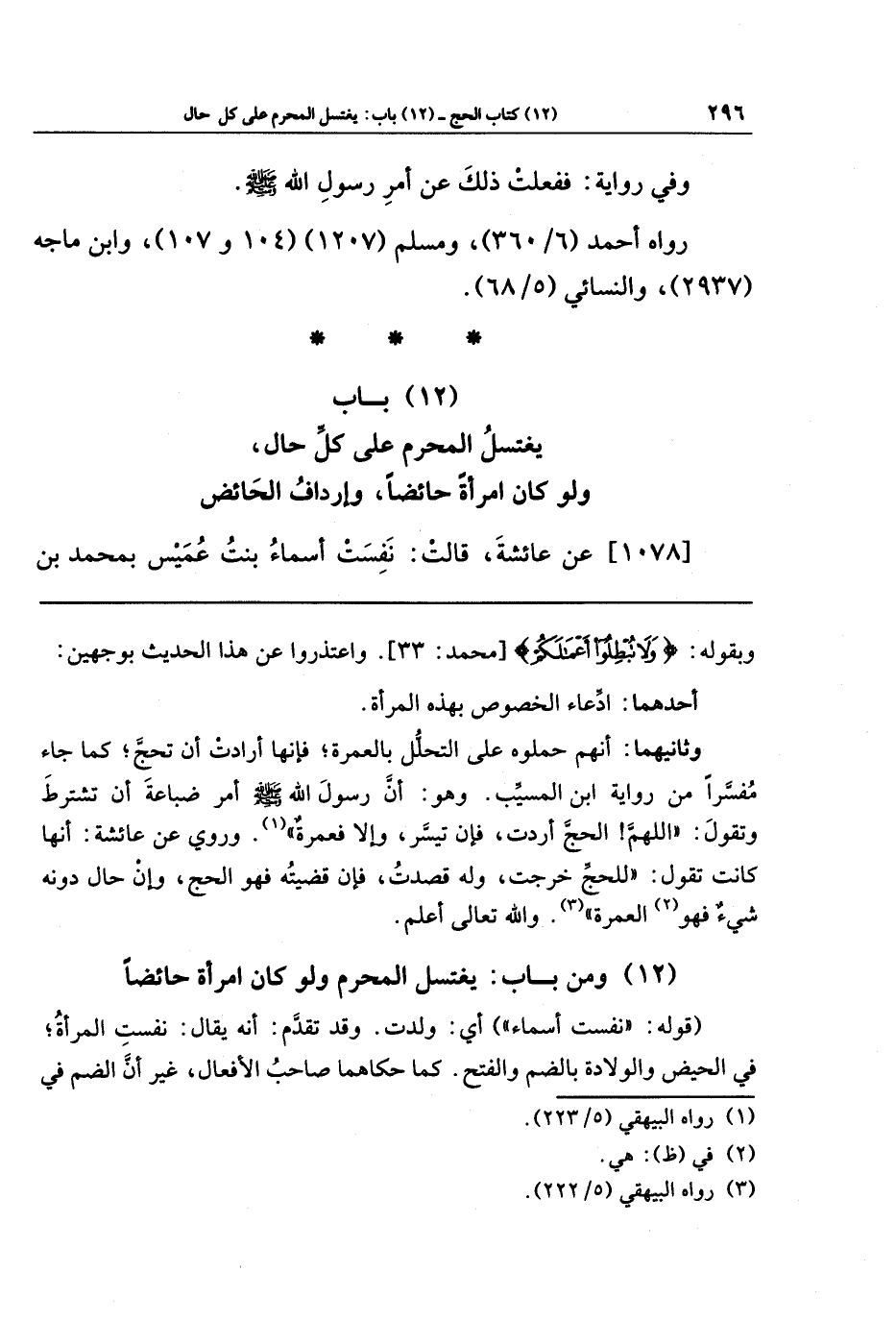 (12) باب يغتسل المحرم على كل حال ولو كان امرأة حائضا، وإرداف الحائض