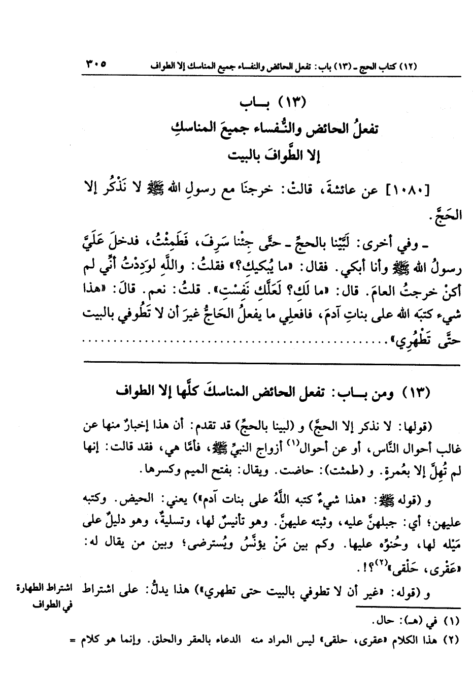 (13) ومن باب: تفعل الحائض المناسك كلها إلا الطواف