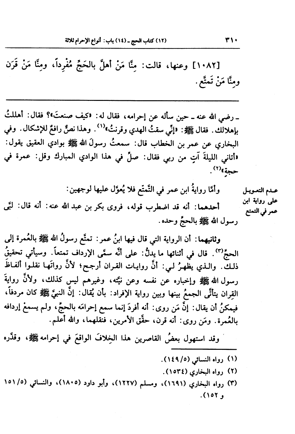 (¬3) رواه البخاري (1691)، ومسلم (1227)، وأبو داود (1805)، والنسائي (5/ 151 و 152).