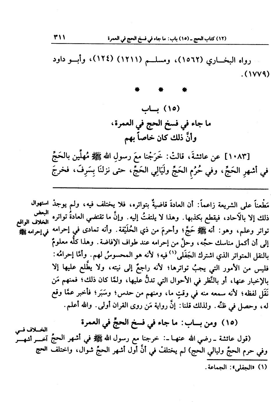 (15) ومن باب: ما جاء في فسخ الحج في العمرة