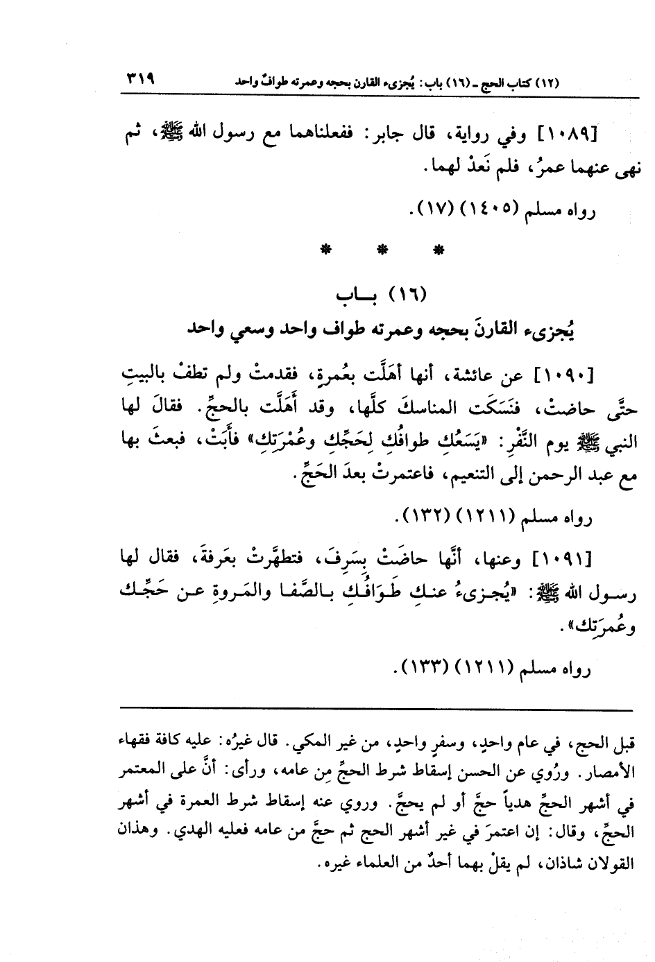 (16) باب يجزئ القارن بحجه وعمرته طواف واحد وسعي واحد