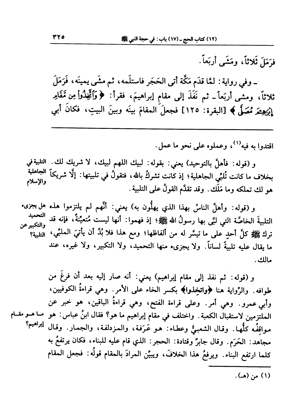 وقوله: (ثم نفذ إلى مقام إبراهيم) يعني: أنه صار إليه بعد أن فرغ من طوافه. والرواية هنا: {وَاتَّخِذُوا} بكسر الخاء على الأمر، وهي قراءة الكوفيين، وأبي عمرو، وهي أمر. وعلى قراءة الفتح، وهي قراءة الباقين، هو خبر عن الملتزمين لاستقبال الكعبة.