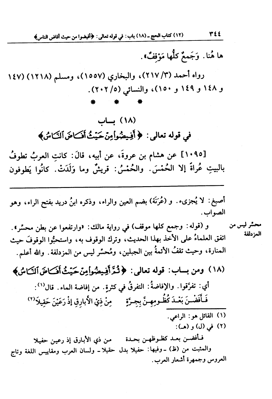 (18) باب في قوله تعالى: {أَفِيضُوا مِن حَيثُ أَفَاضَ النَّاسُ}