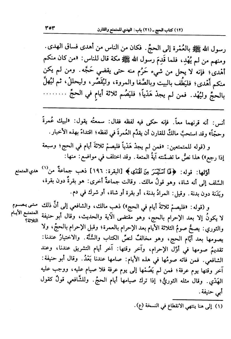 وقوله للمتمتعين: (فمن لم يجد هَديًا فليصم ثلاثة أيام في الحج، وسبعة إذا رجع) هذا نصٌّ ما تضمنته آية المتعة. وقد اختلف في مواضع منها: