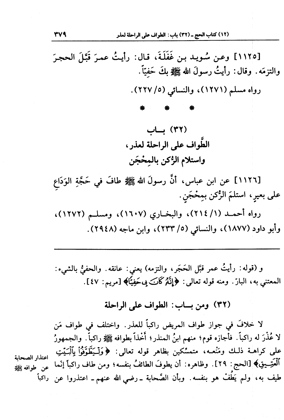 (32) باب الطواف على الراحلة لعذر، واستلام الركن بالمحجن
