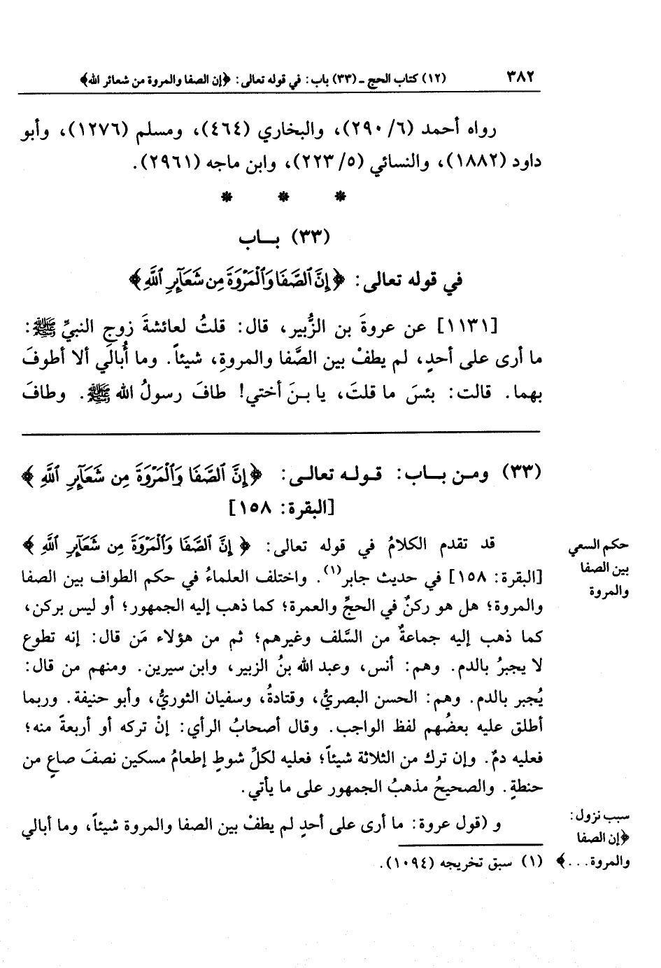 (33) ومن باب: قوله تعالى: {إِنَّ الصَّفَا وَالمَروَةَ مِن شَعَائِرِ اللَّهِ}