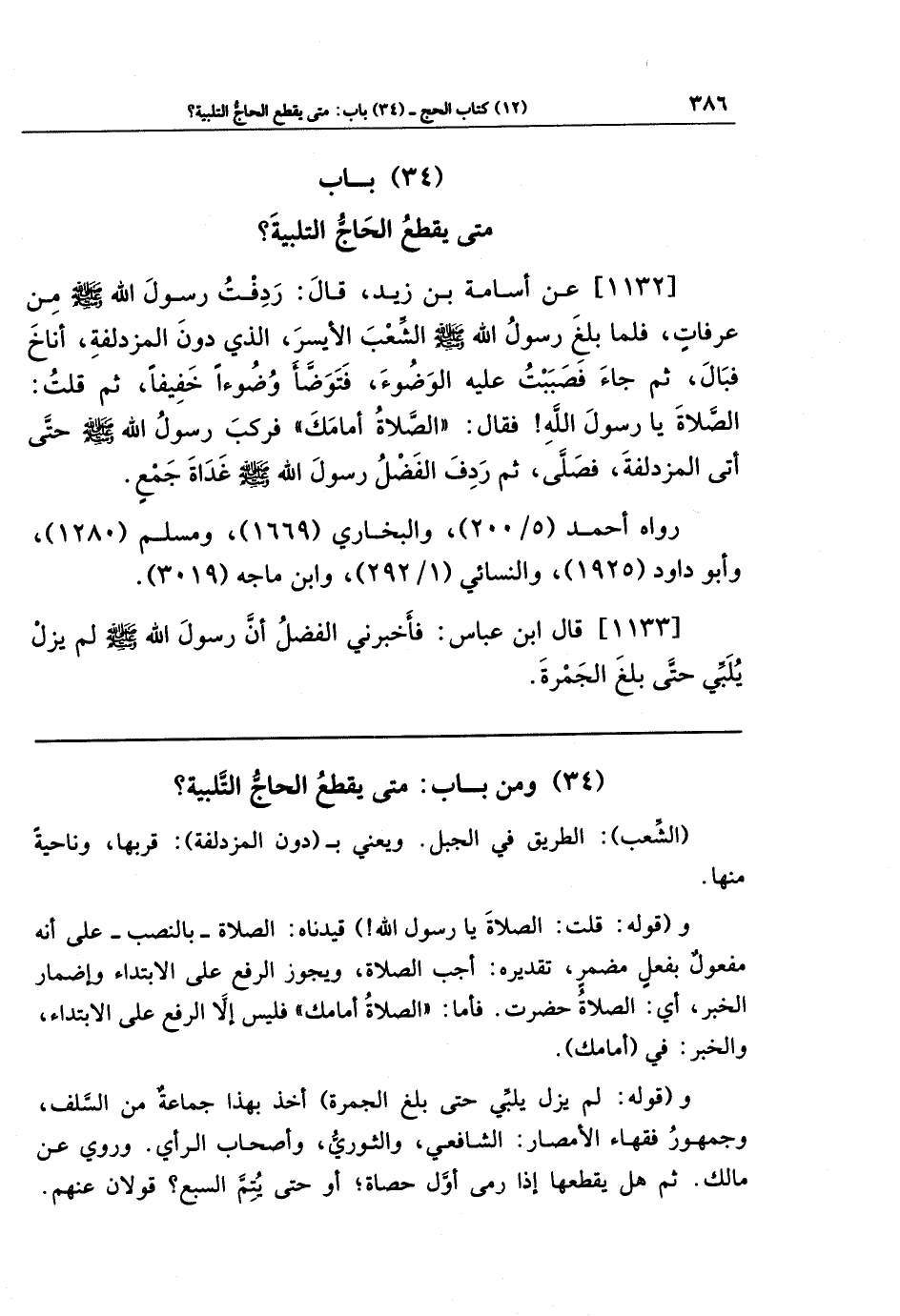(34) ومن باب: متى يقطع الحاج التلبية؟