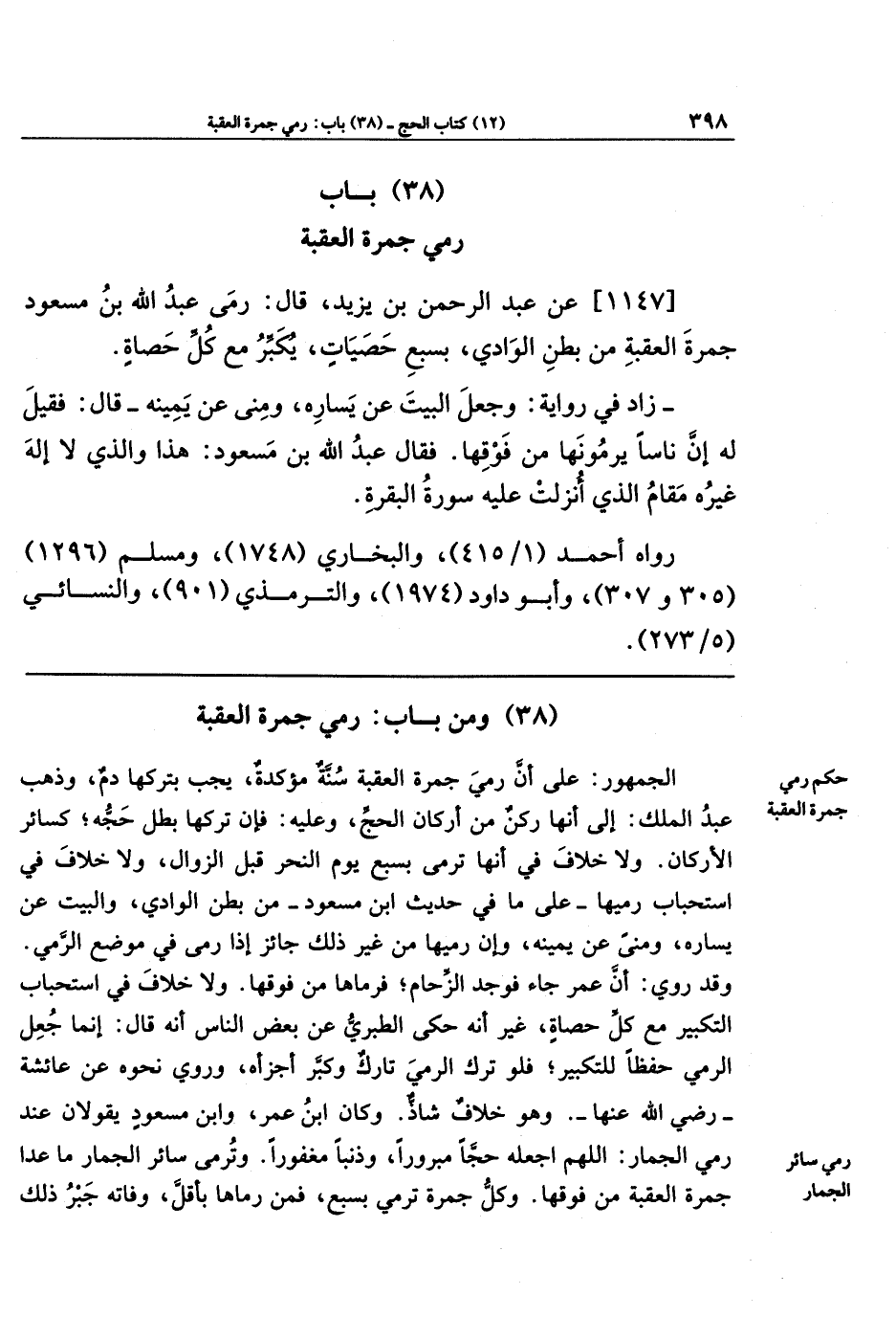 (38) ومن باب: رمي جمرة العقبة