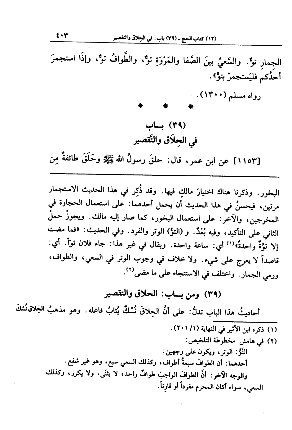 (39) ومن باب: الحلاق والتقصير
