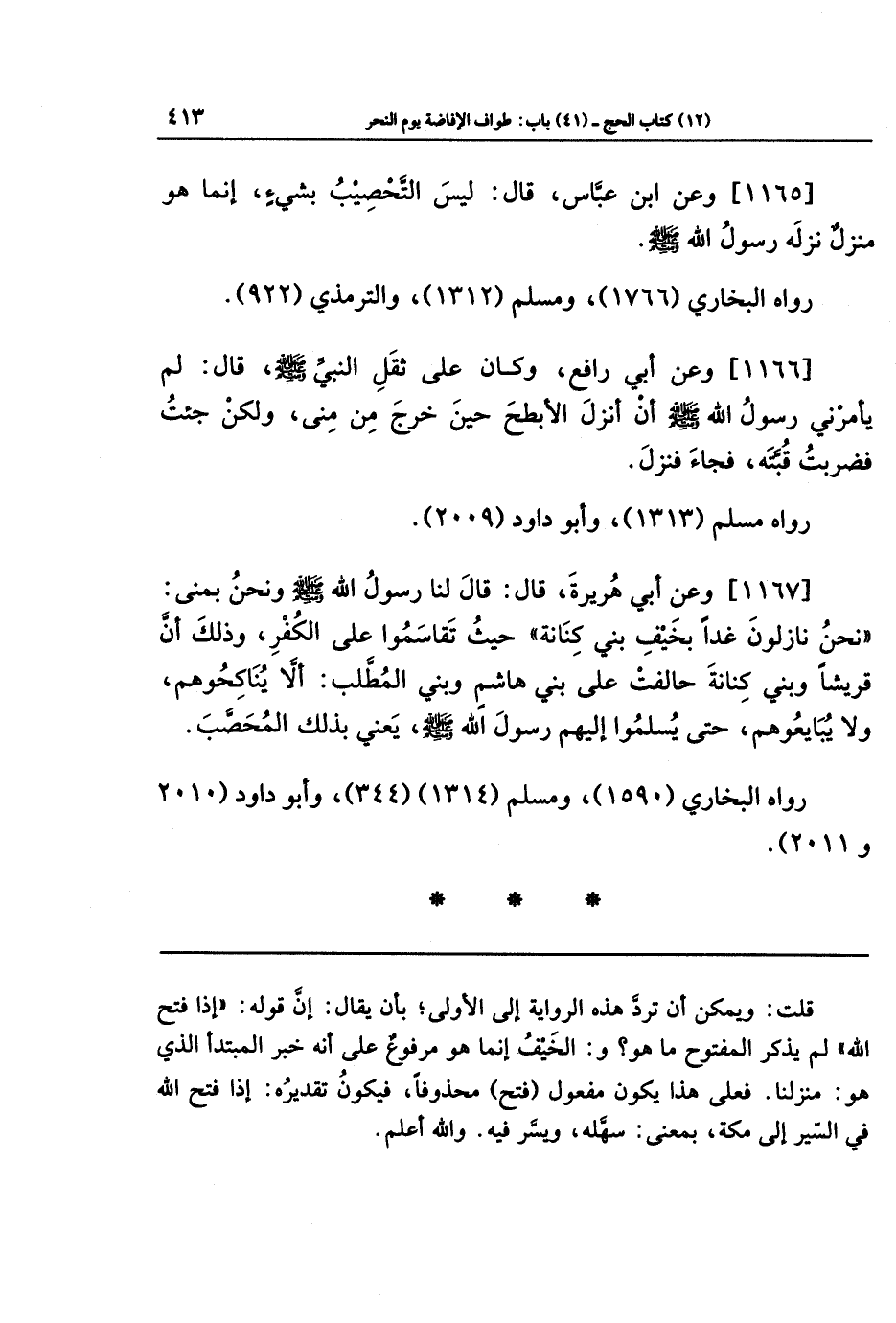 [1165] وَعَن ابنِ عَبَّاسٍ قَالَ: لَيسَ التَّحصِيبُ بِشَيءٍ، إِنَّمَا هُوَ مَنزِلٌ نَزَلَهُ رَسُولُ اللَّهِ - صَلَّى اللَّهُ عَلَيهِ وَسَلَّمَ-.