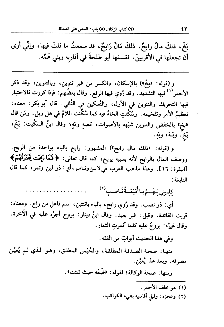 وقوله: (ذلك مال رابح)؛ المشهور: رابح بالباء بواحدة من الربح. ووصف المال بالرابح؛ لأنه بسببه يربح، كما قال تعالى: {فَمَا رَبِحَت تِجَارَتُهُم} وهذا مذهب العرب في لابن وتامر؛ أي: ذو لبن وتمر، كما قال النابغة:
