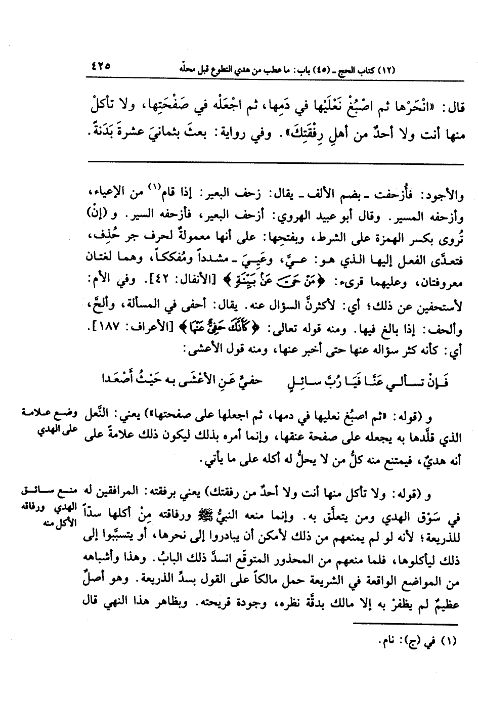 والأجود: (فأُزحفت) بضم الألف، يقال: زحف البعير: إذا قام (¬1) من الإعياء، وأزحفه المسير. وقال أبو عبيد الهروي: أزحف البعير، فأزحفه السير. و (إن) تُروى بكسر الهمزة على الشرط، وبفتحها: على أنها معمولة لحرف جر حُذِف، فتعدَّى الفعل إليها الذي هو: عيَّ، : وعَيِيَ - مشددًا ومُفككًا، وهما لغتان معروفتان، وعليهما قرئ: {مَن حَيَّ عَن بَيِّنَةٍ} وفي الأم: لأستحفين عن ذلك؛ أي: لأكثرنَّ السؤال عنه. يقال: أحفى في المسألة، وألَحَّ، وألحف: إذا بالغ فيها. ومنه قوله تعالى: {كَأَنَّكَ حَفِيٌّ عَنهَا}؛ أي: كأنه كثر سؤاله عنها حتى أخبر عنها، ومنه قول الأعشى: