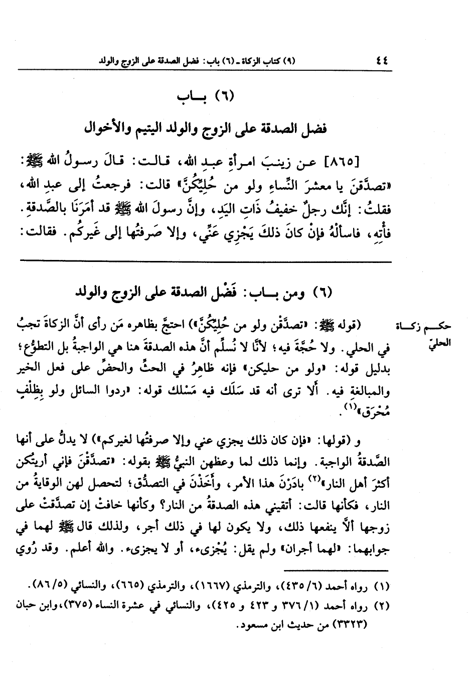 (6) ومن باب: فضل الصدقة على الزوج والولد