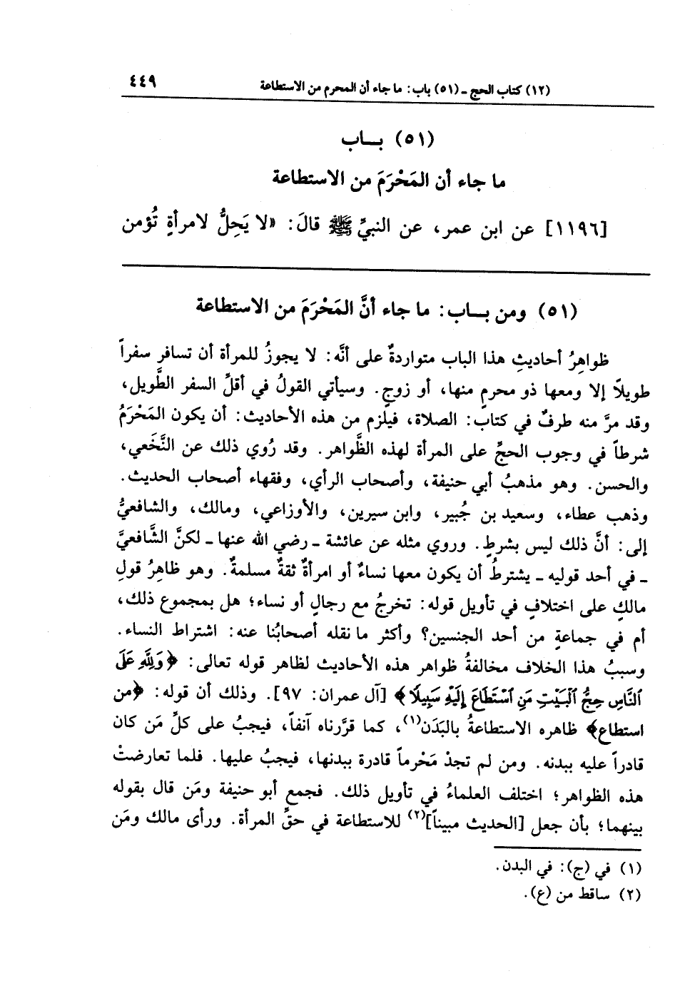 (51) باب ما جاء أن المحرم من الاستطاعة