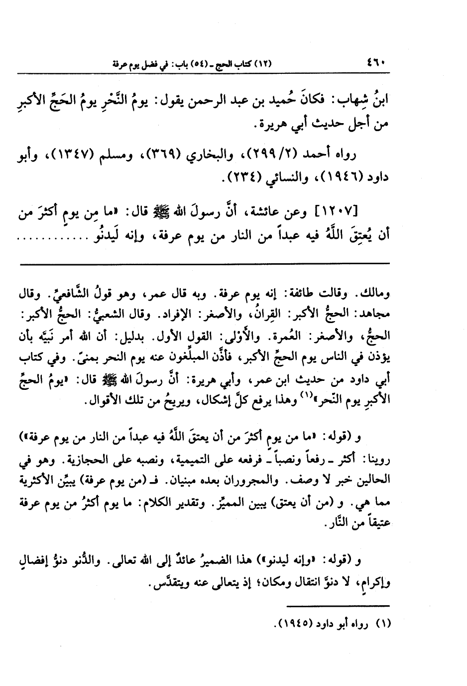 ابنُ شِهَابٍ: فَكَانَ حُمَيدُ بنُ عَبدِ الرَّحمَنِ يَقُولُ: يَومُ النَّحرِ يَومُ الحَجِّ الأَكبَرِ - مِن أَجلِ حديث أَبِي هُرَيرَةَ.