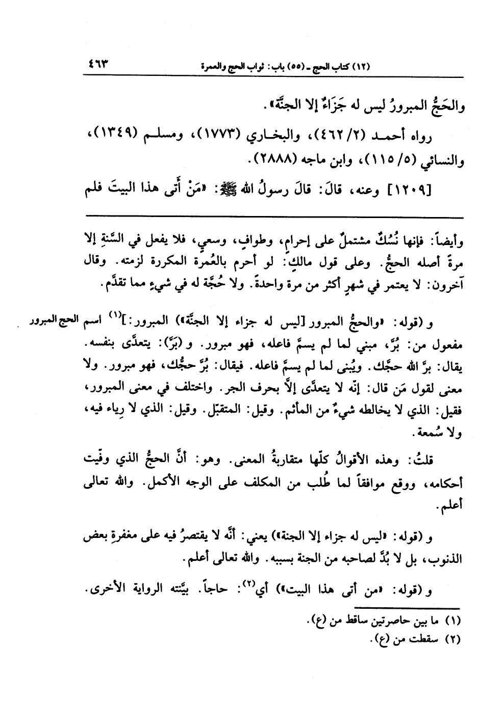 وَالحَجُّ المَبرُورُ لَيسَ لَهُ جَزَاءٌ إِلَّا الجَنَّةُ.