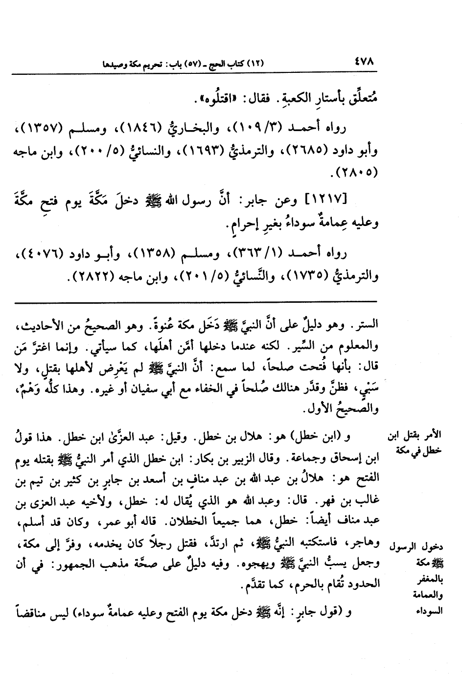 [1217] وعَن جَابِرِ أَنَّ رَسُولَ اللَّهِ -صَلَّى اللَّهُ عَلَيهِ وَسَلَّمَ- دَخَلَ مَكَّةَ يَومَ فَتحِ مَكَّةَ وَعَلَيهِ عِمَامَةٌ سَودَاءُ بِغَيرِ إِحرَامٍ.