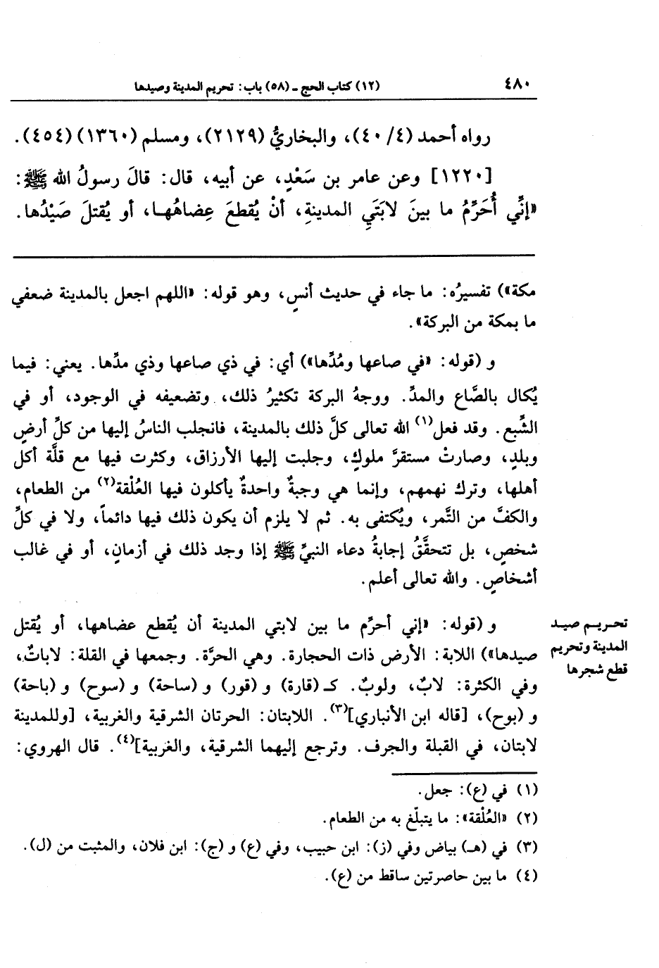 [1220] وعن عَامِرُ بنُ سَعدٍ، عَن أَبِيهِ قَالَ: قَالَ رَسُولُ اللَّهِ صَلَّى اللَّهُ عَلَيهِ وَسَلَّمَ: إِنِّي أُحَرِّمُ مَا بَينَ لَابَتَي المَدِينَةِ أَن يُقطَعَ عِضَاهُهَا أَو يُقتَلَ صَيدُهَا.
