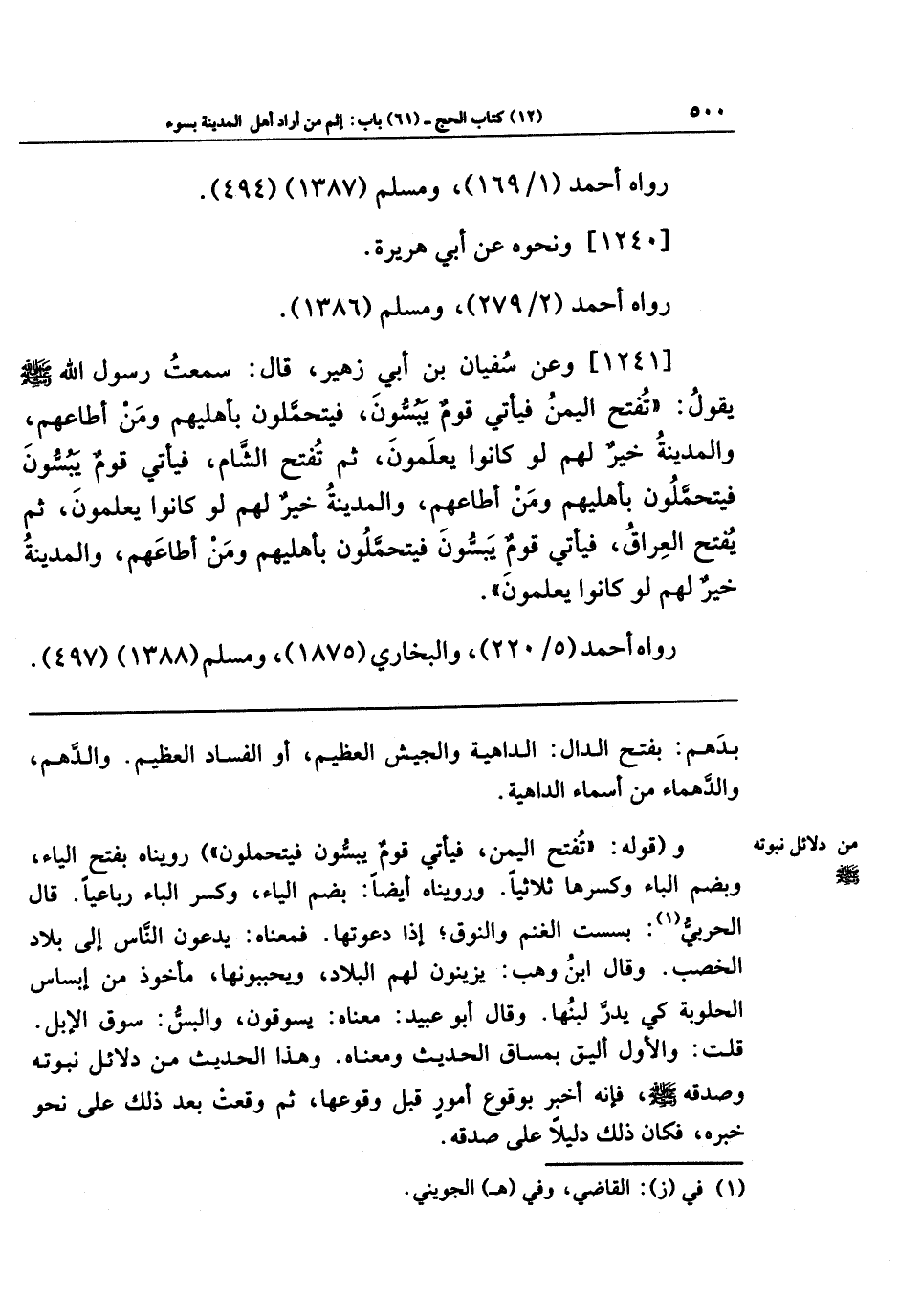 [1241] وعَن سُفيَانَ بنِ أَبِي زُهَيرٍ قَالَ: سَمِعتُ رَسُولَ اللَّهِ -صَلَّى اللَّهُ عَلَيهِ وَسَلَّمَ- يَقُولُ: تُفتَحُ اليَمَنُ، فَيَأتِي قَومٌ يَبُسُّونَ فَيَتَحَمَّلُونَ بِأَهلِيهِم وَمَن أَطَاعَهُم، وَالمَدِينَةُ خَيرٌ لَهُم لَو كَانُوا يَعلَمُونَ، ثُمَّ تفتَحُ الشَّامُ، فَيَأتِي قَومٌ يَبُسُّونَ فَيَتَحَمَّلُونَ بِأَهلِيهِم وَمَن أَطَاعَهُم، وَالمَدِينَةُ خَيرٌ لَهُم لَو كَانُوا يَعلَمُونَ، ثُمَّ يُفتَحُ العِرَاقُ، فَيَأتِي قَومٌ يَبُسُّونَ فَيَتَحَمَّلُونَ بِأَهلِيهِم وَمَن أَطَاعَهُم، وَالمَدِينَةُ خَيرٌ لَهُم لَو كَانُوا يَعلَمُونَ.
