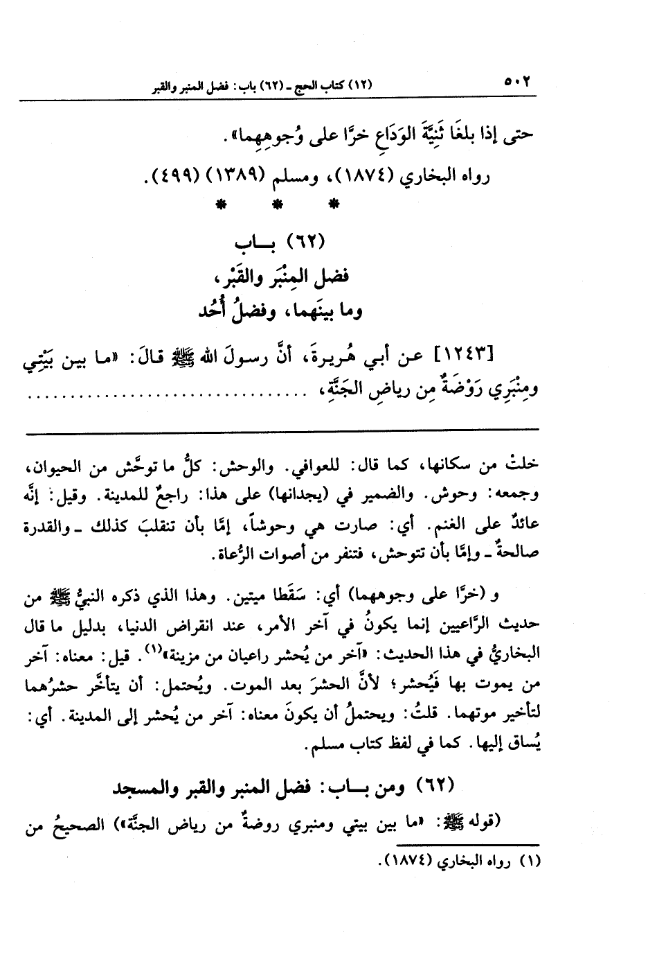 (62) باب فضل المنبر والقبر وما بينهما، وفضل أحد