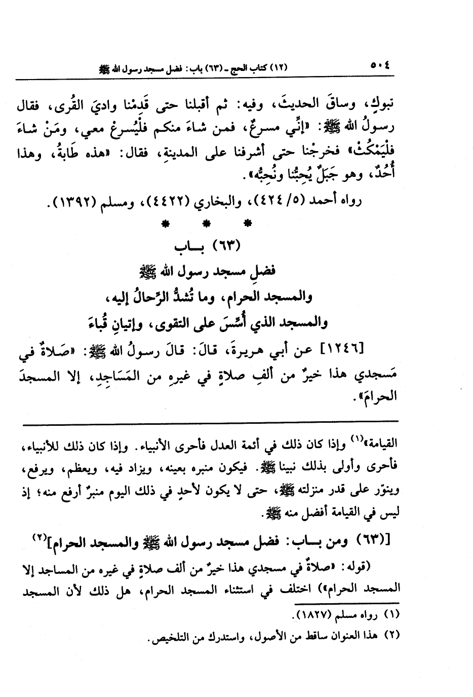 (63) ومن باب: فضل مسجد رسول الله - صلى الله عليه وسلم - والمسجد الحرام (¬2)