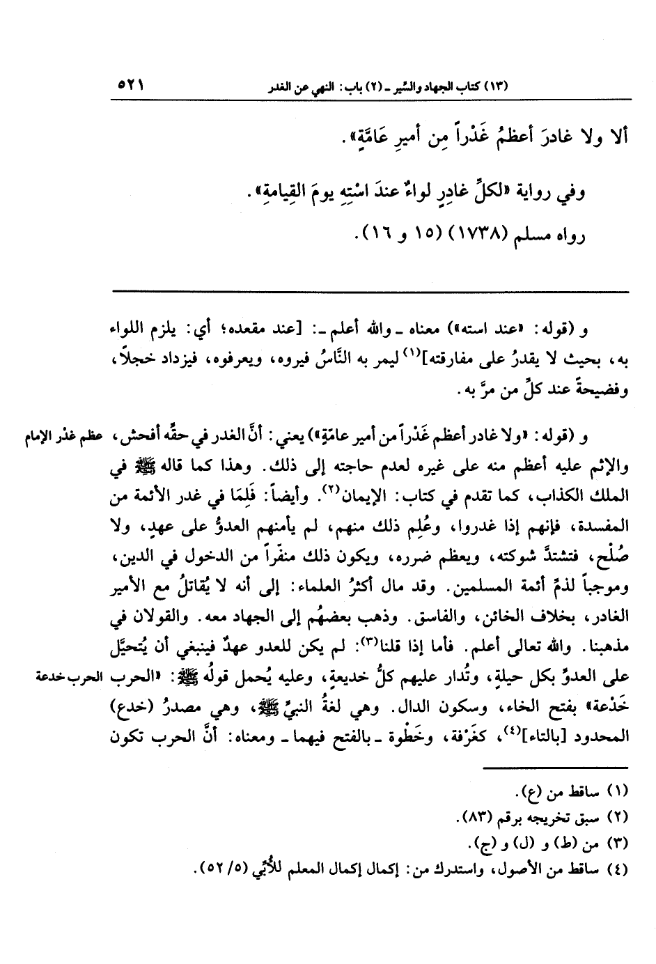 أَلَا وَلَا غَادِرَ أَعظَمُ غَدرًا مِن أَمِيرِ عَامَّةٍ.