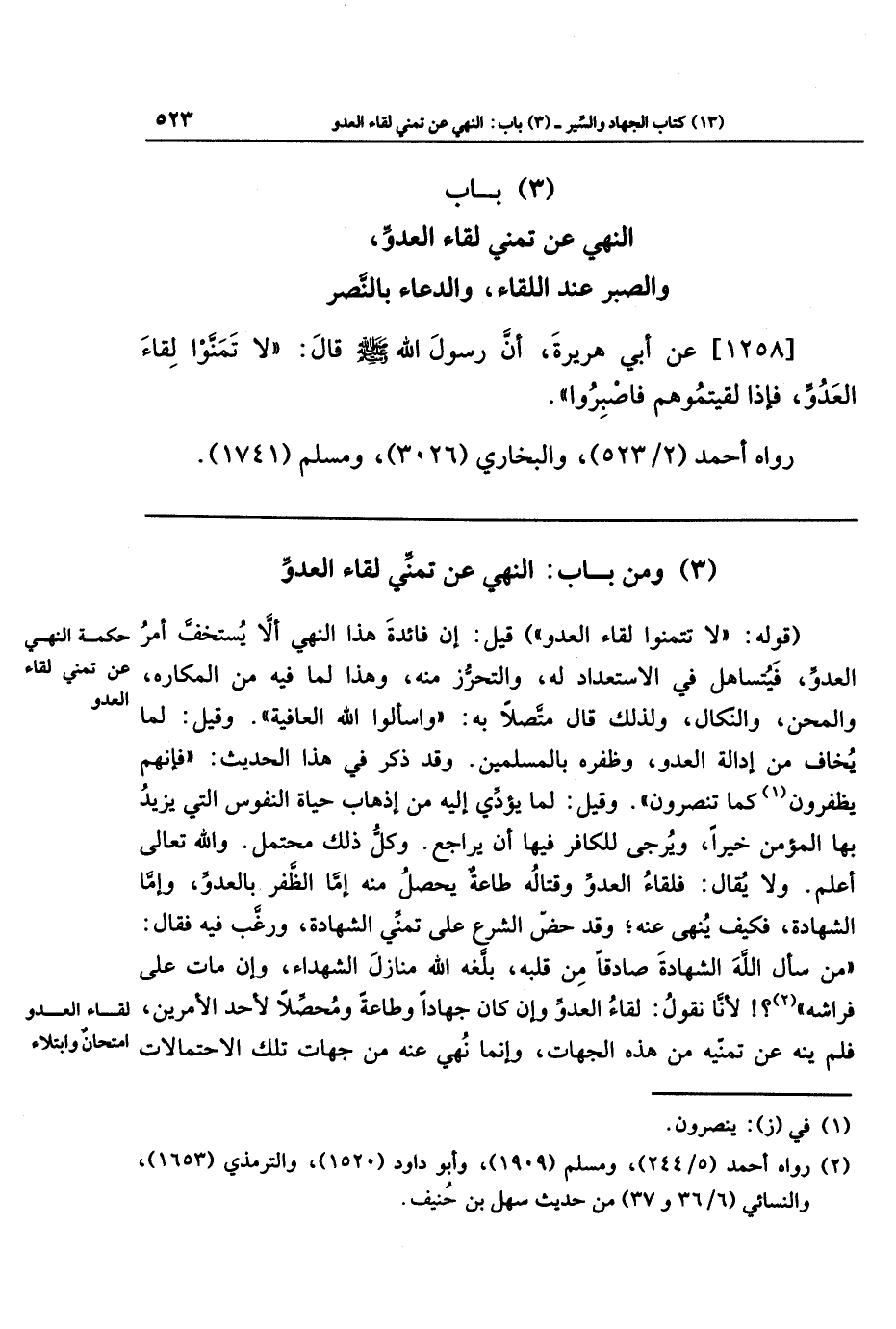 (3) باب النهي عن تمنِّي لقاء العدو والصبر عند اللقاء والدعاء بالنصر