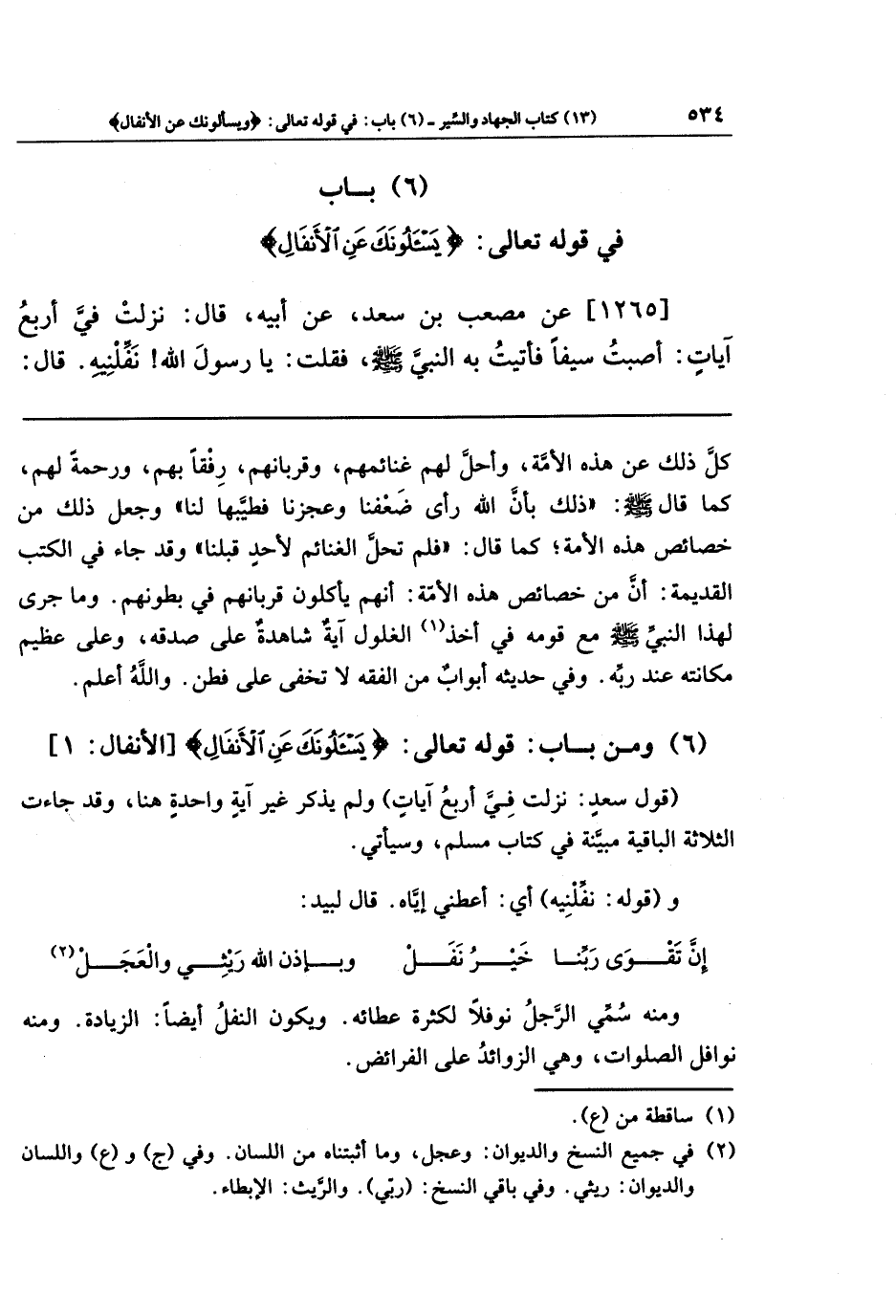 (6) باب في قوله تعالى: {يَسأَلُونَكَ عَنِ الأَنفَالِ}