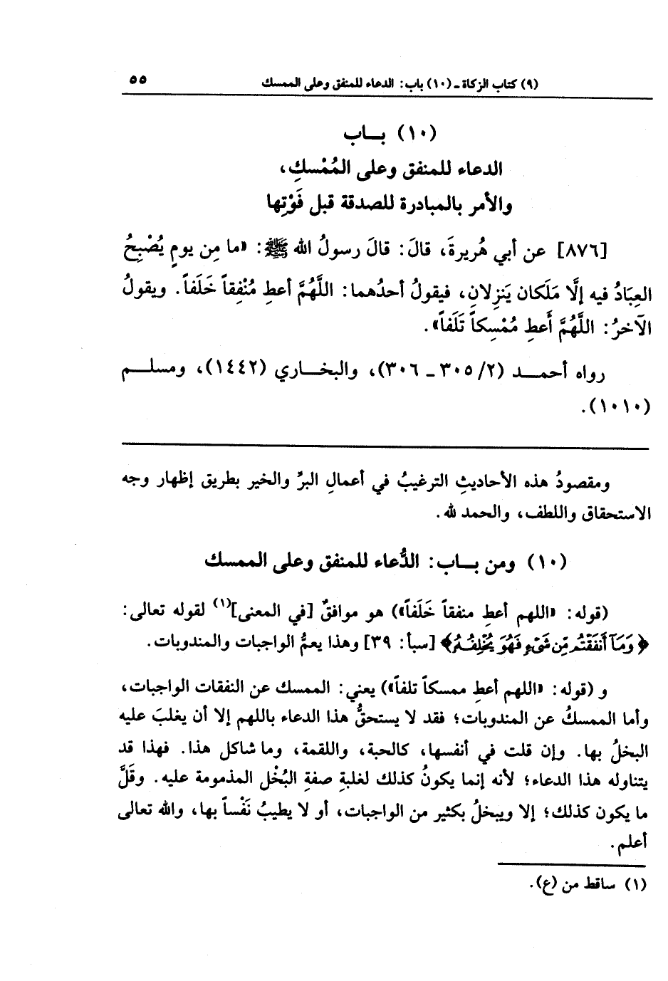 (10) ومن باب: الدعاء للمنفق وعلى الممسك