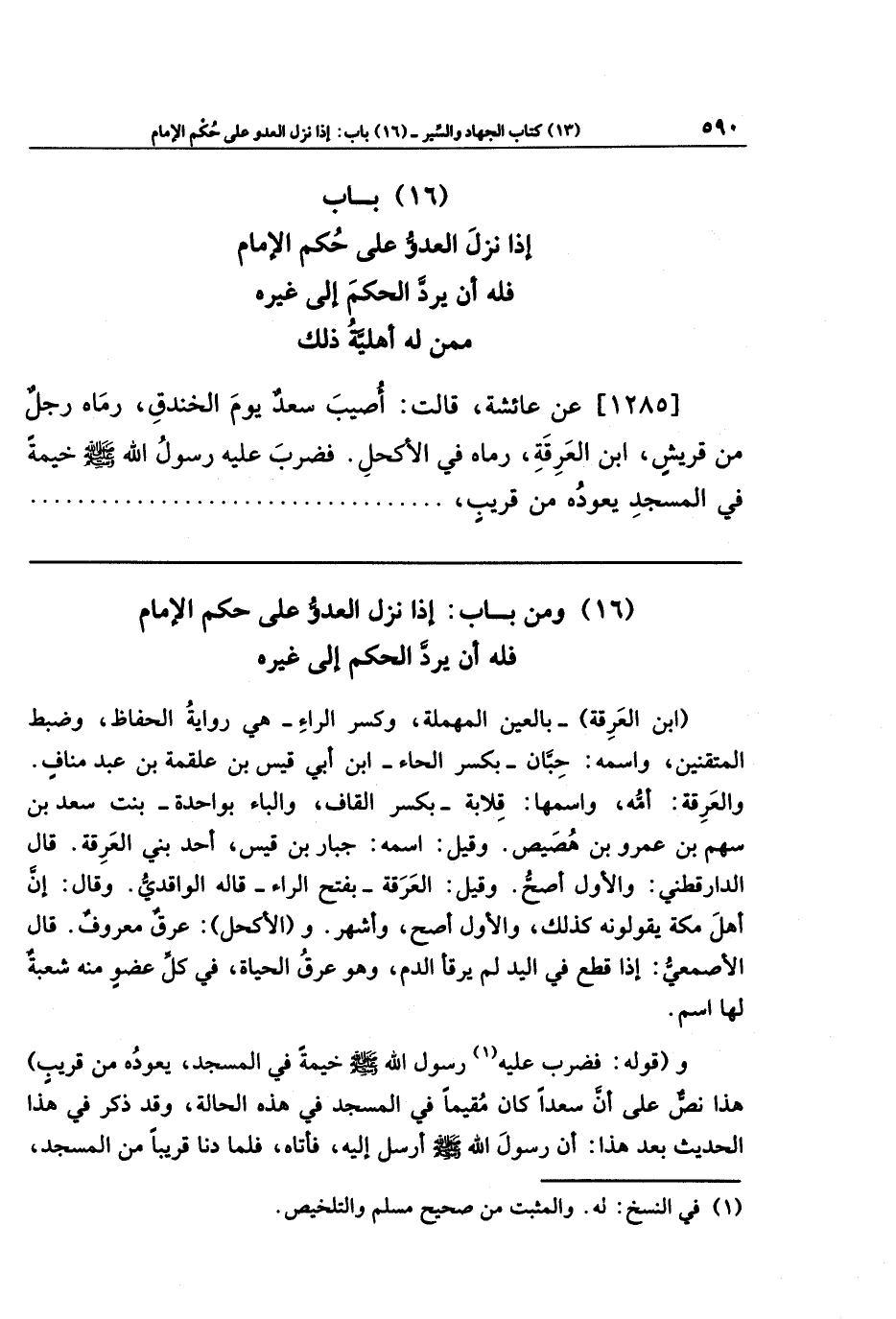 (16) باب إذا نزل العدو على حكم الإمام فله أن يرد الحكم إلى غيره ممن له أهلية ذلك