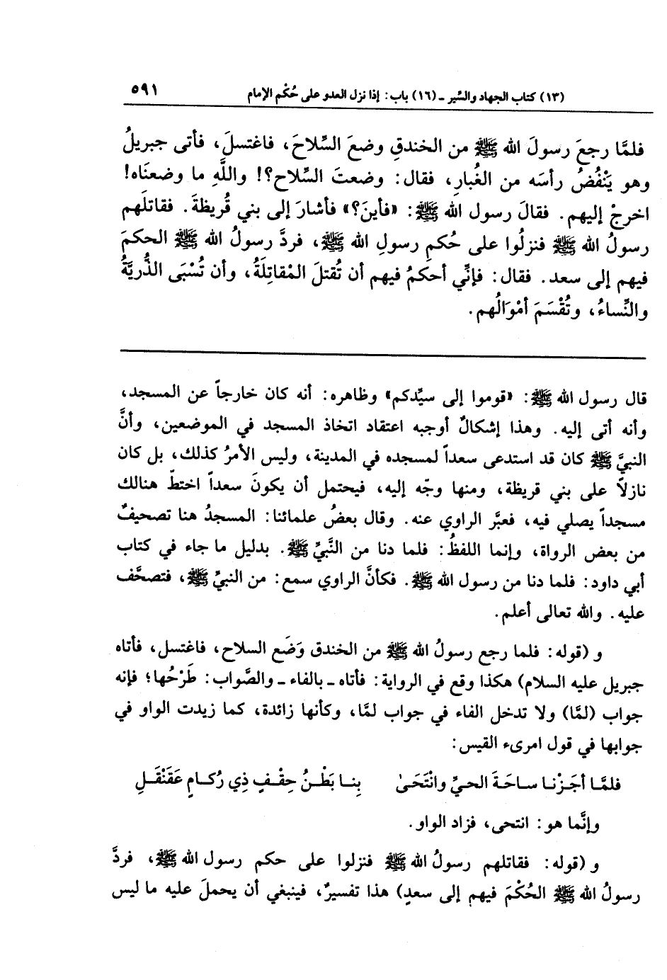 وقوله: (فقاتلهم رسول الله -صلى الله عليه وسلم- فنزلوا على حكم رسول الله -صلى الله عليه وسلم-، فرد رسول الله -صلى الله عليه وسلم- الحكم فيهم إلى سعد)؛ هذا تفسير، فينبغي أن يحمل عليه ما ليس