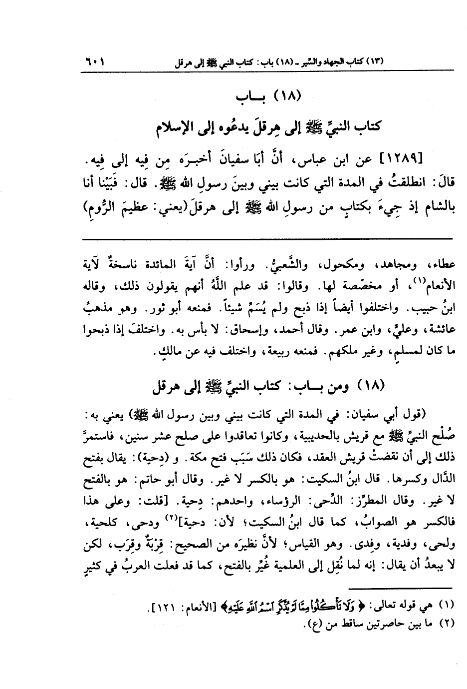 [1289] عَن ابنِ عَبَّاسٍ: أَنَّ أَبَا سُفيَانَ أَخبَرَهُ مِن فِيهِ إِلَى فِيهِ. قَالَ: انطَلَقتُ فِي المُدَّةِ الَّتِي كَانَت بَينِي وَبَينَ رَسُولِ اللَّهِ-صَلَّى اللَّهُ عَلَيهِ وَسَلَّمَ-، قَالَ: فَبَينَا أَنَا بِالشَّامِ إِذ جِيءَ بِكِتَابٍ مِن رَسُولِ اللَّهِ -صَلَّى اللَّهُ عَلَيهِ وَسَلَّمَ- إِلَى هِرَقلَ، يَعنِي: عَظِيمَ الرُّومِ،