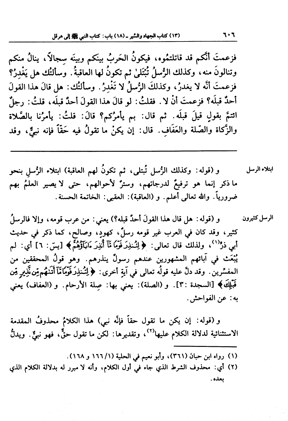 وقوله: (هل قال هذا القول أحد قبله؟ ) يعني: من عرب قومه، وإلا فالرسل كثير، وقد كان في العرب غير قومه رسل، كهود، وصالح، كما ذكر في حديث أبي ذر (¬1)، ولذلك قال تعالى: {لِتُنذِرَ قَومًا مَا أُنذِرَ آبَاؤُهُم}؛ أي: لم يبعث في آبائهم المشهورين عندهم رسول ينذرهم. وهو قول المحققين من المفسرين. وقد دل عليه قوله تعالى في آية أخرى: {لِتُنذِرَ قَومًا مَا أَتَاهُم مِن نَذِيرٍ مِن قَبلِكَ}