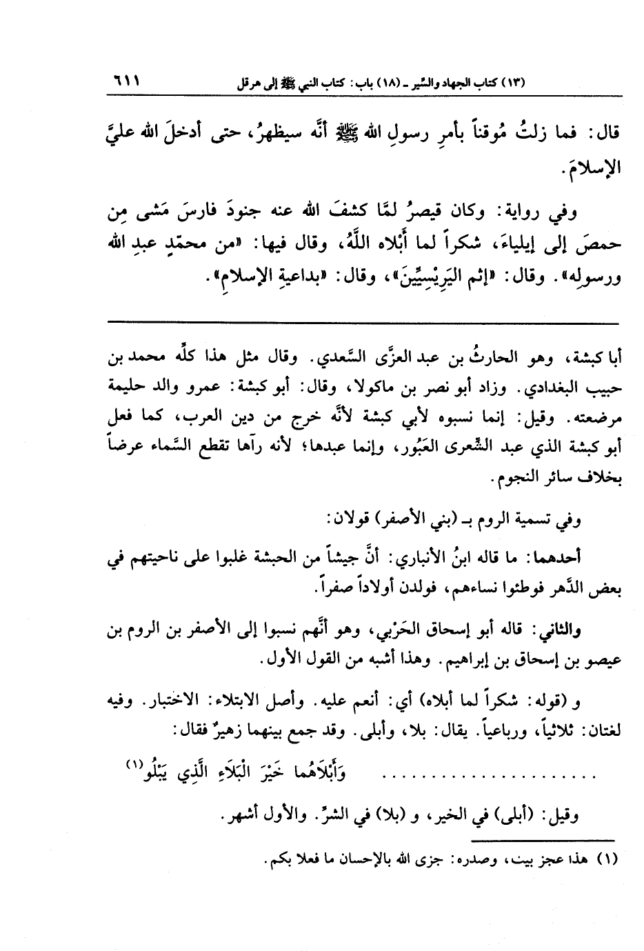 وفي تسمية الروم بـ (بني الأصفر) قولان).